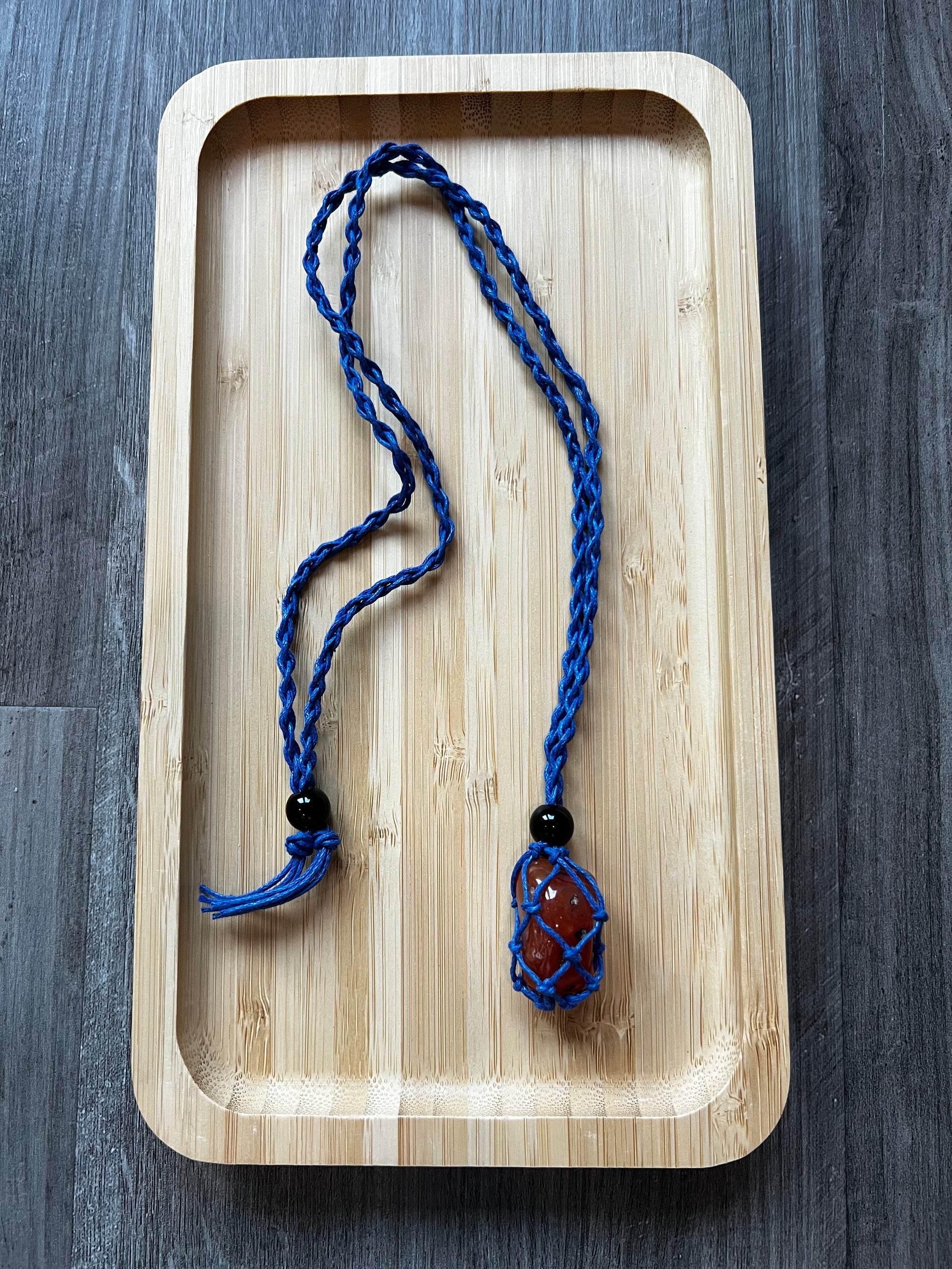 Blue Hemp Necklace w/ Carnelian Stone